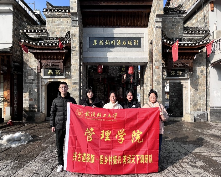 2024年3月2日,在我院程丛喜教授和胡静老师的指导和支持下,“兴古道茶旅·促乡村振兴”茗扬天下调研队成员彭雪婷、魏萱、王田田、杨田静、张兆亿一行5人前往湖北省赤壁市羊楼洞古镇开展访谈调研活动。