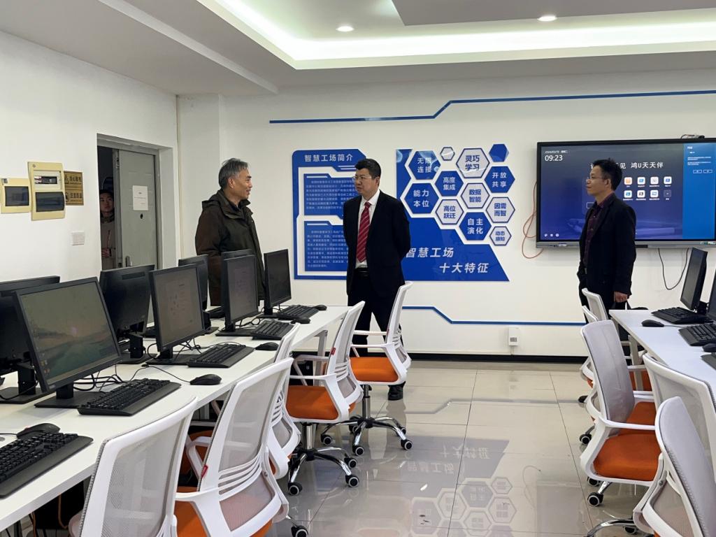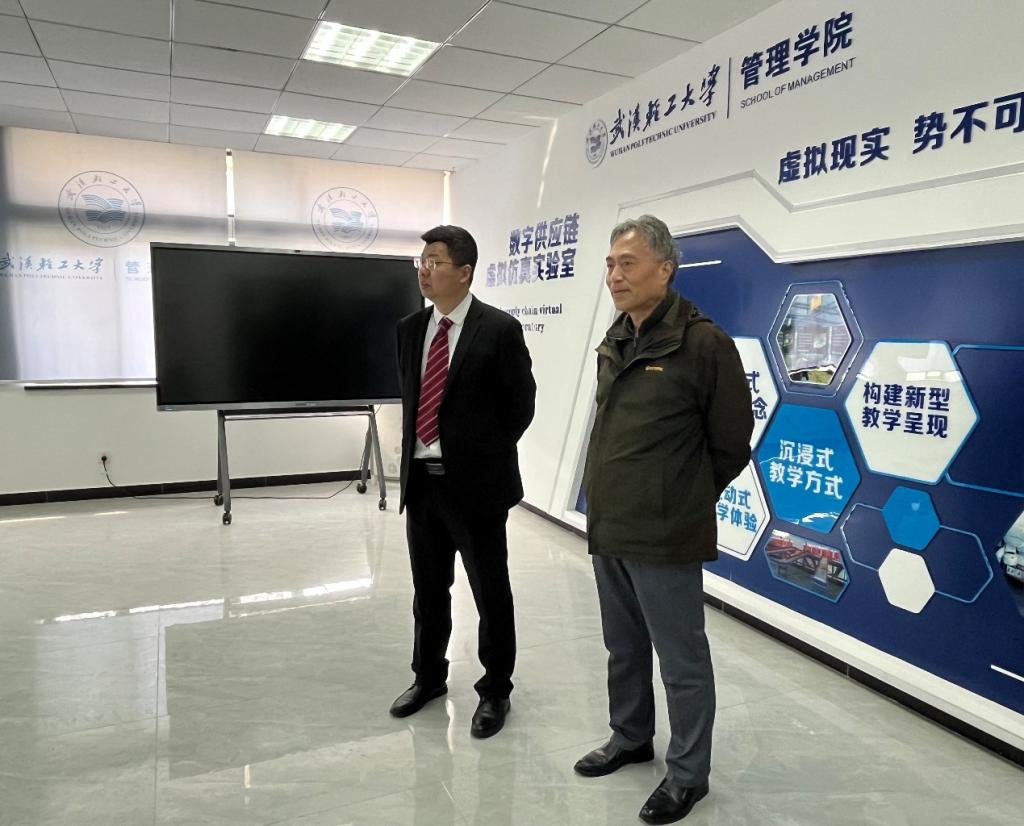 座谈会前,金颂一行参观考察了学院办公环境、数字供应链虚拟仿真实验室、新商科智慧学习工场等。