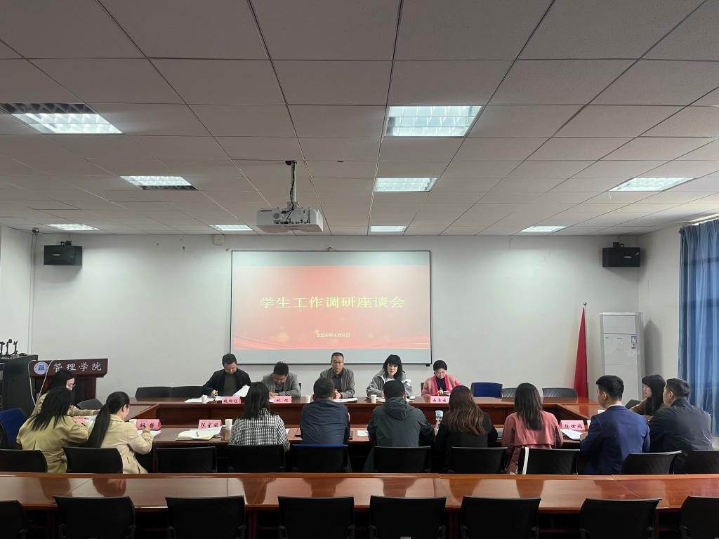 为深入贯彻落实校党委二届六次全会、校二届教代会七次会议精神,持续深化下基层实践活动,有效落实联系基层“十个一”制度,精准掌握学生工作动态,提高学生管理工作的针对性、实效性,不断提高工作水平,4月8日下午,yl7703永利官网和外语学院在文管楼421会议室召开学生工作座谈会。学校党委副书记沙顺利深入yl7703永利官网对辅导员队伍建设、学生教育管理等工作进行调研。学工部(处)主要负责人、yl7703永利官网和外语学院党委副书记、心理中心相关负责人和全体辅导员参加座谈。